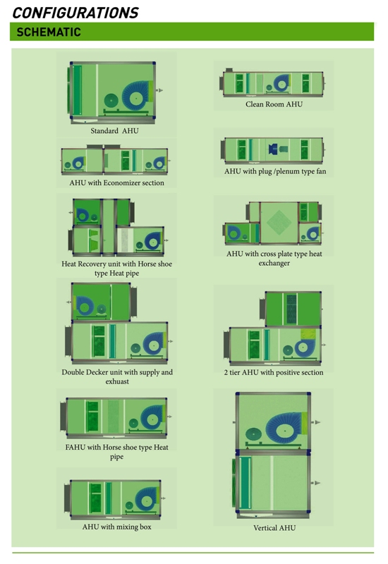Standard Air handling are of two types Floor mounted (FM)/ Ceiling suspended (CS) which are also known as recirculation AHU.