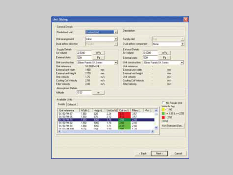 Standard Model along with custom built Air handling units can be selected. The software is incorporated with the cooling and heating coil selection both with water, Glycol and refrigerant based medium.